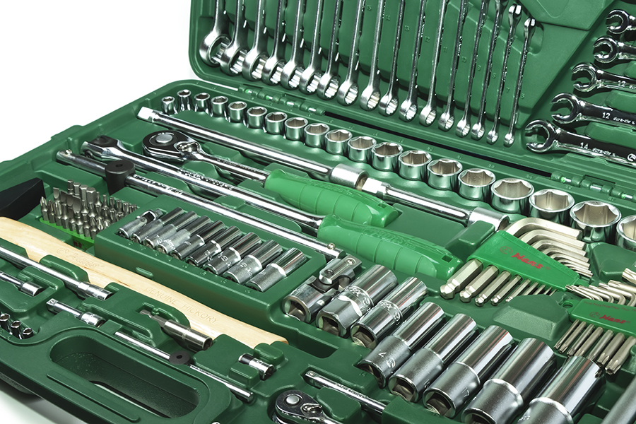 В наборе инструментов TK-158V — 158 предметов с посадочными квадратами ½" и 1/4". Большая часть из них произведена из хромванадиевой стали — прочнейшего материала, который ценят за его долговечность.